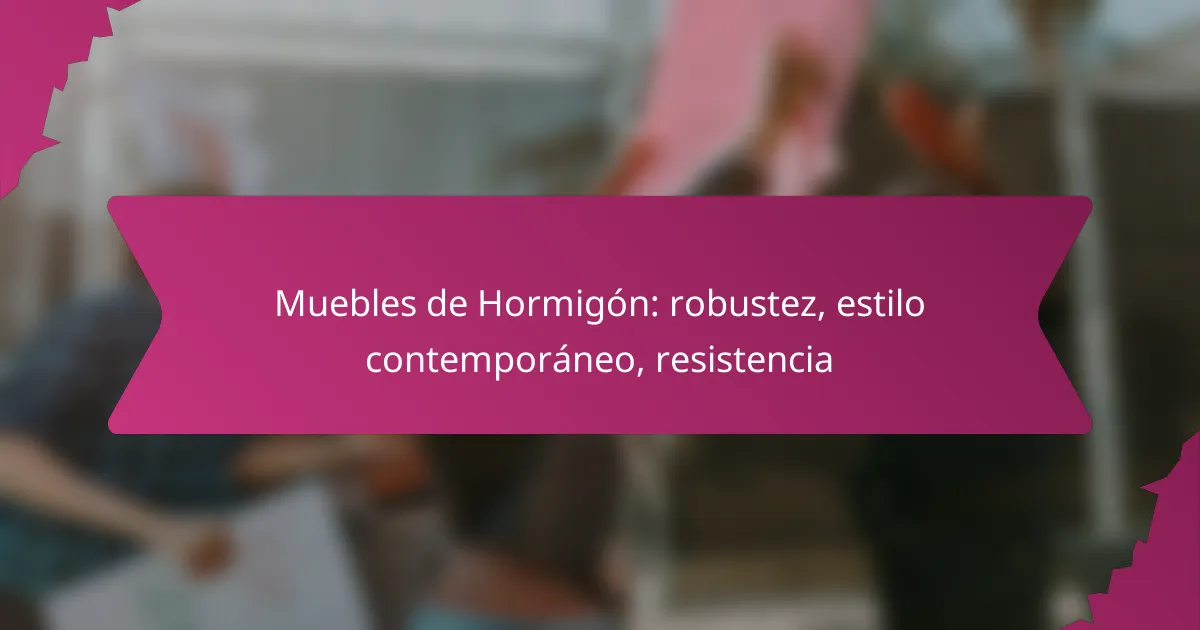 Los muebles de hormigón son elementos de diseño que utilizan hormigón como material principal, ofreciendo una estética moderna y minimalista. Su fabricación puede incluir diferentes técnicas, como el moldeado y el pulido, lo que permite crear formas y acabados únicos.